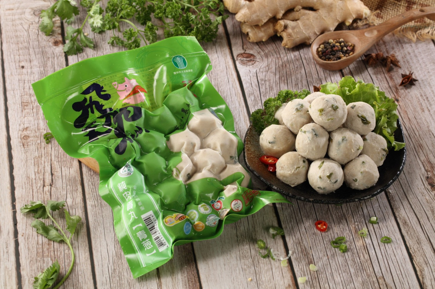 採用臺中市大安區肉品市場電宰衛生豬後腿肉,純肉配方絕不加粉,絕不添加防腐劑,搭配臺中市大安區在地、當季生產,經檢測無農藥殘留的「大安葱」,入口後葱香四溢、豬肉天然鮮彈Q脆,每一口都吃的到安心