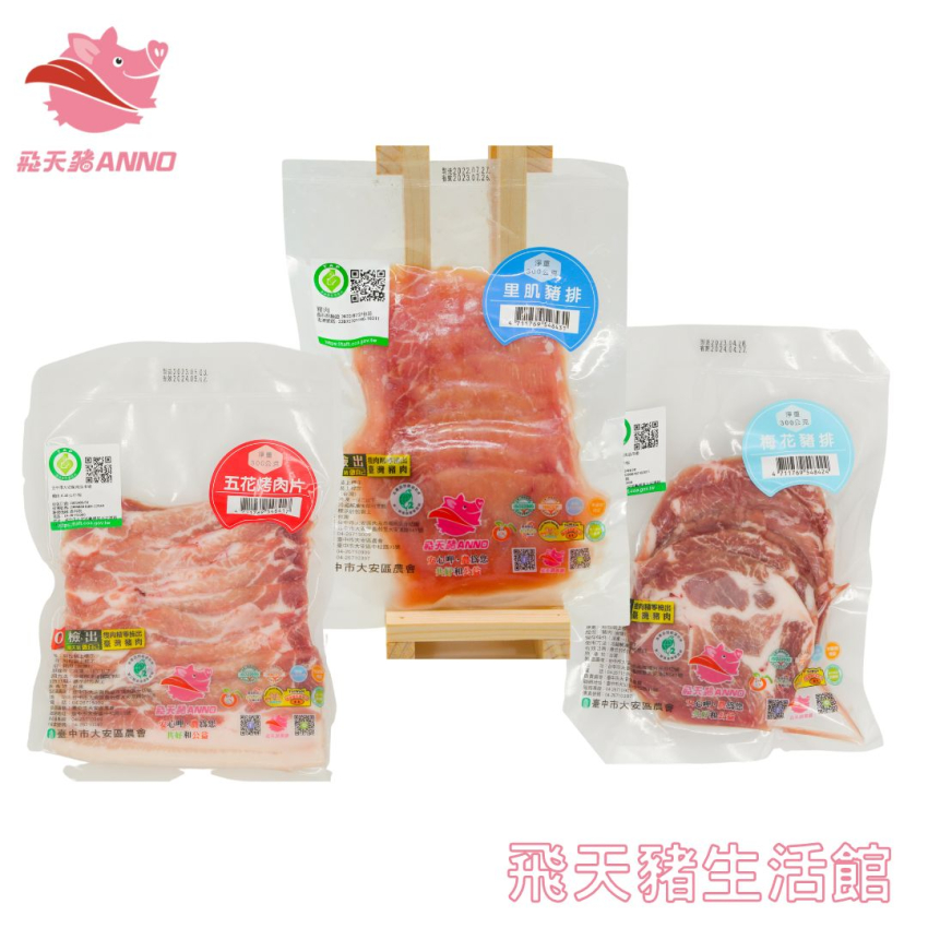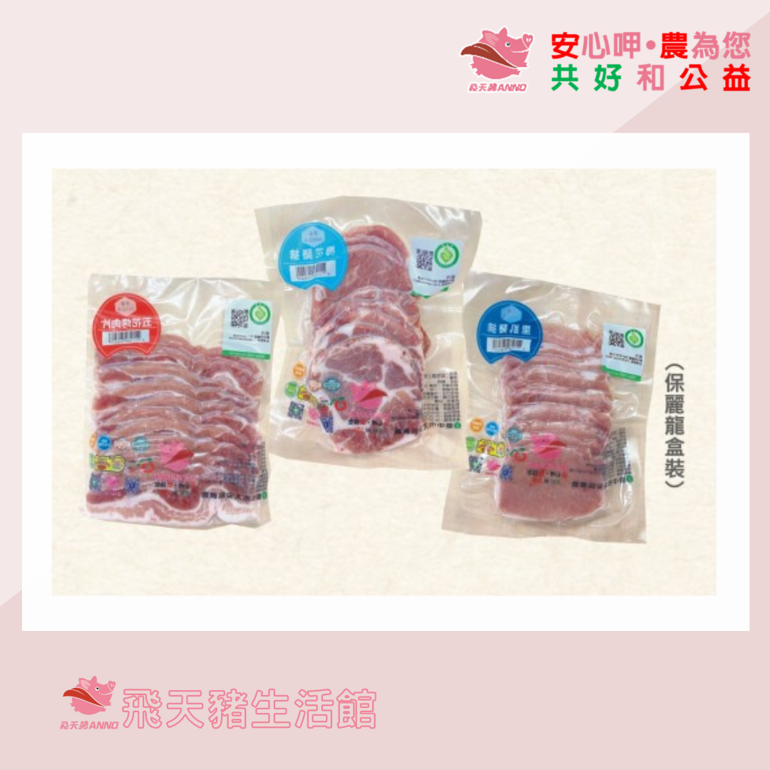 |(3入組/盒)|梅花豬排*1,里肌豬排*1,五花烤肉片*1|飛天豬|100%國產豬肉|